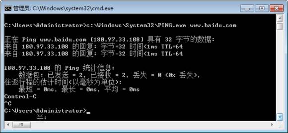 而我执行c:\Windows\System32\PING.exe http://www.baidu.com则成功